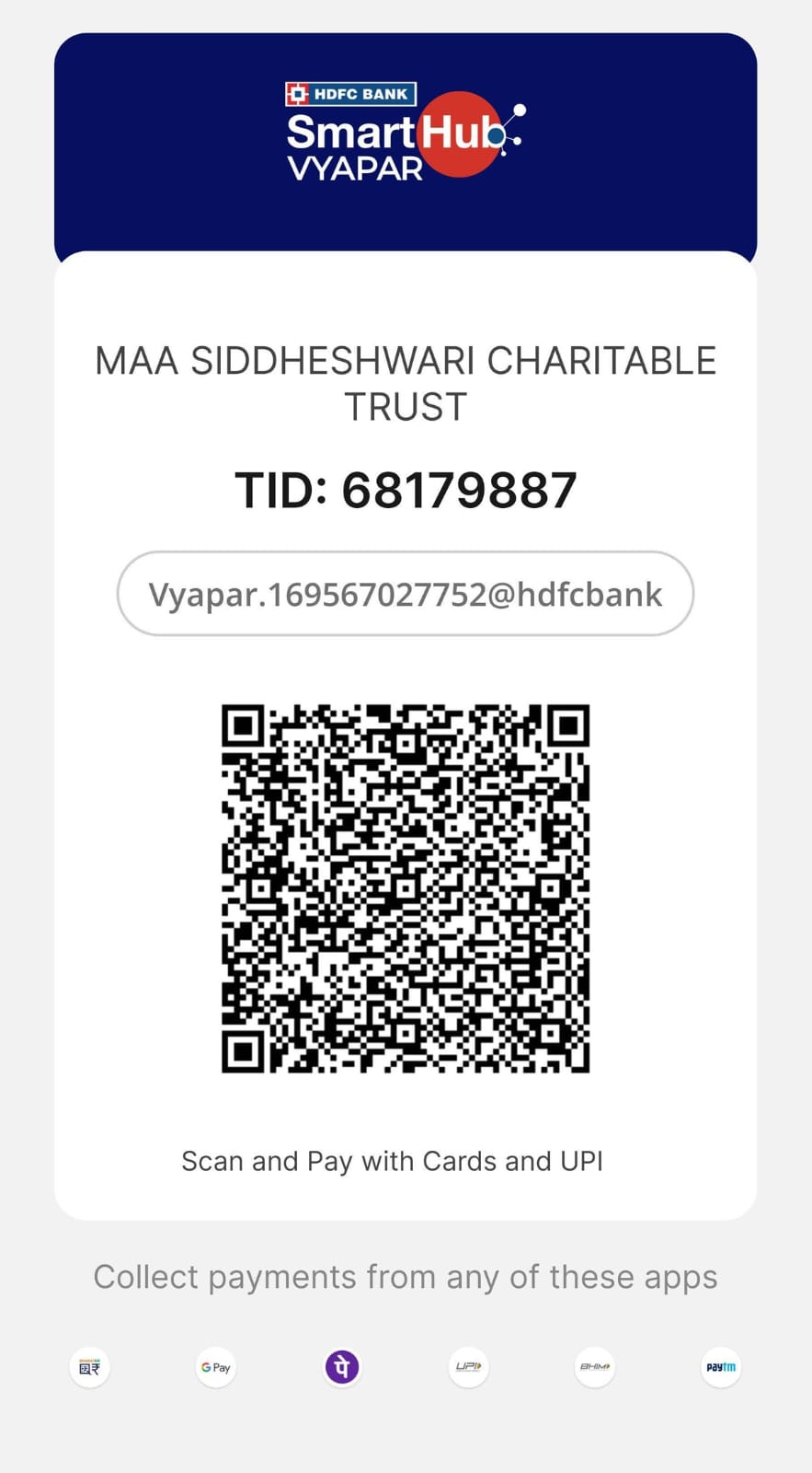 A/C Name : Maa Siddheshwari Charitable Trust